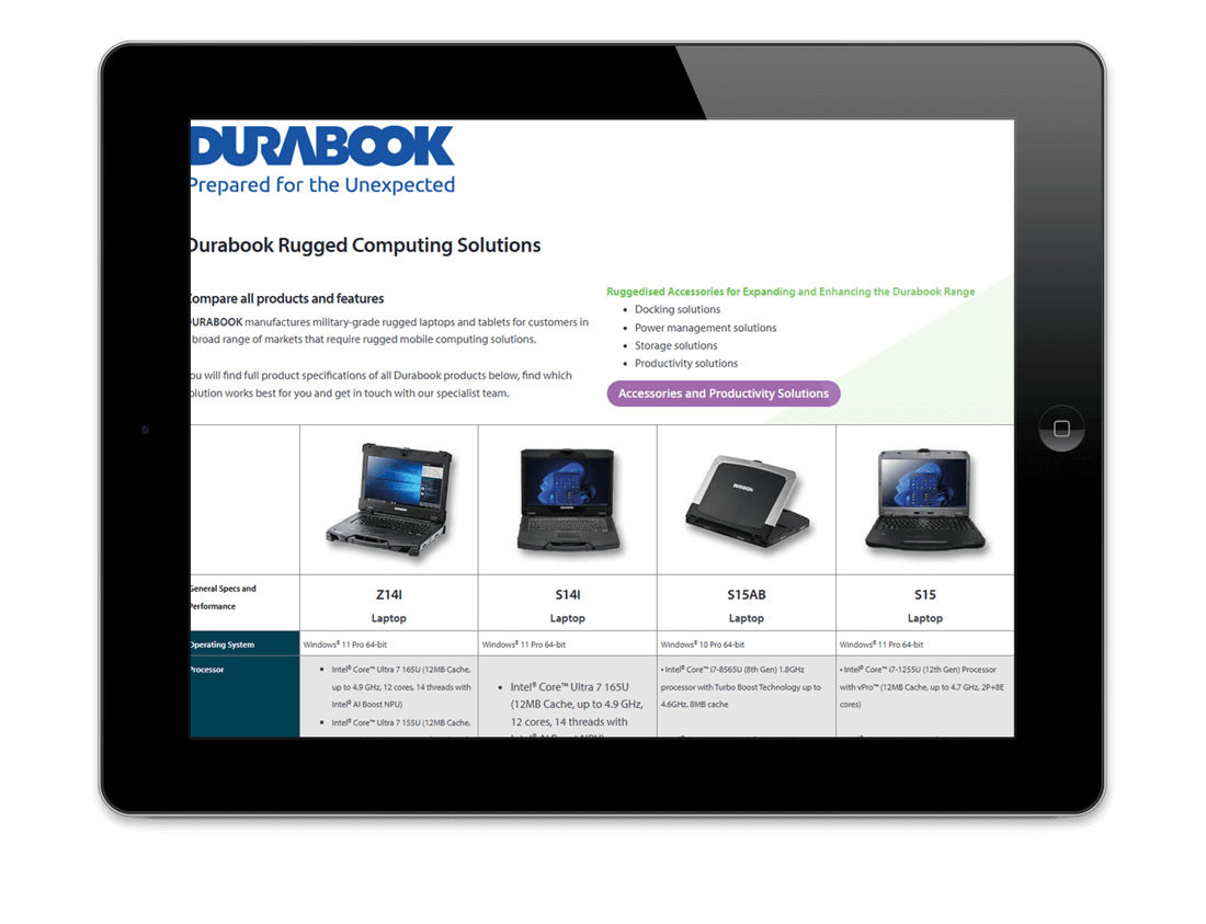 Durabook Rugged Laptops and Tablets Product Comparison